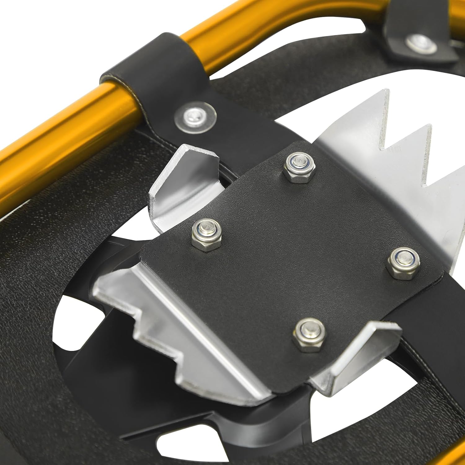- [Built to Last] Crafted from robust PE, aluminum, and stainless steel with anodic oxidation, these snowshoes withstand impacts, low temps, and wear, ensuring long-lasting performance for countless skiing adventures.