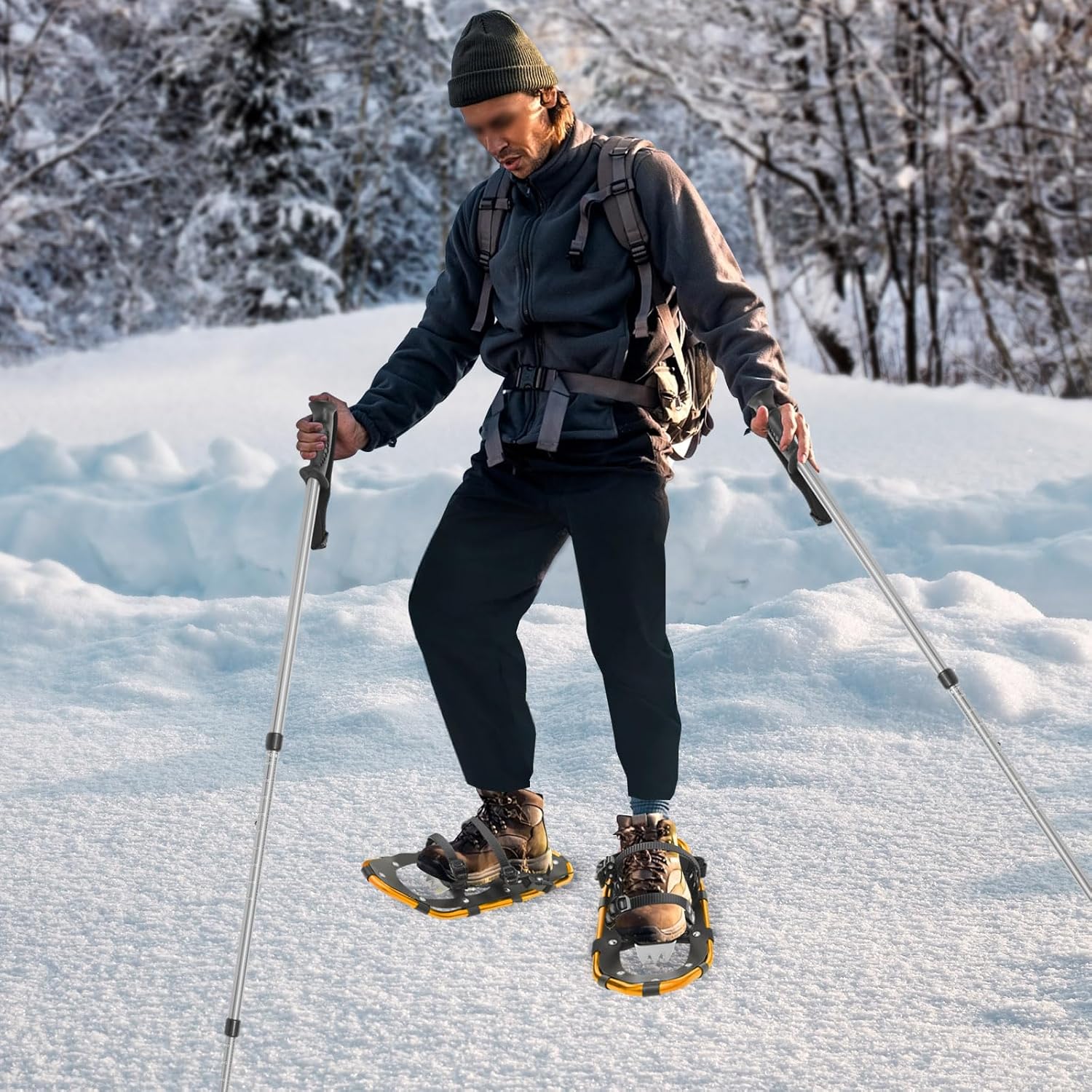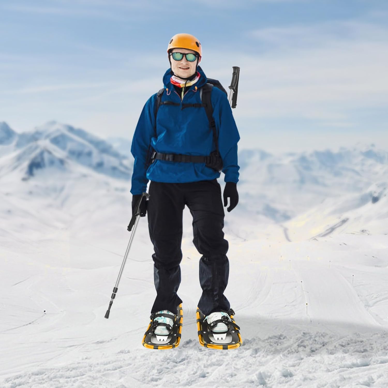 - ❄【Upgraded Crampons】These snowshoes feature high-strength, serrated crampons that provide excellent grip on snow, enhancing stability and safety during skiing, hiking, and other winter outdoor activities.