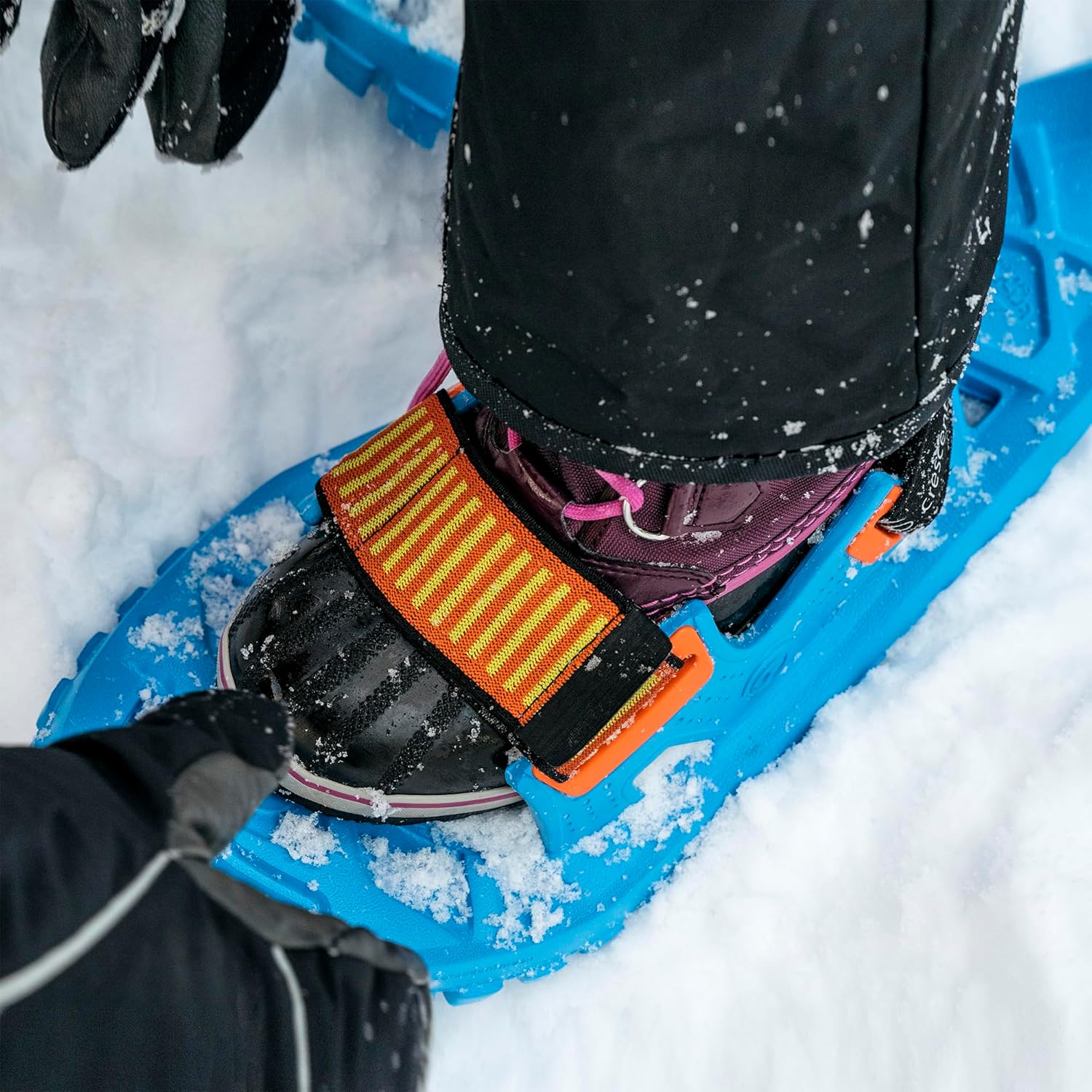 Crescent Moon Kids Snowshoes | Easy 17.5″ Foam Snowshoes for Kids to 100 pounds with Secure Hook & Loop Binding, Insulating Rocker Cloud Deck & Durable Ice Spikes