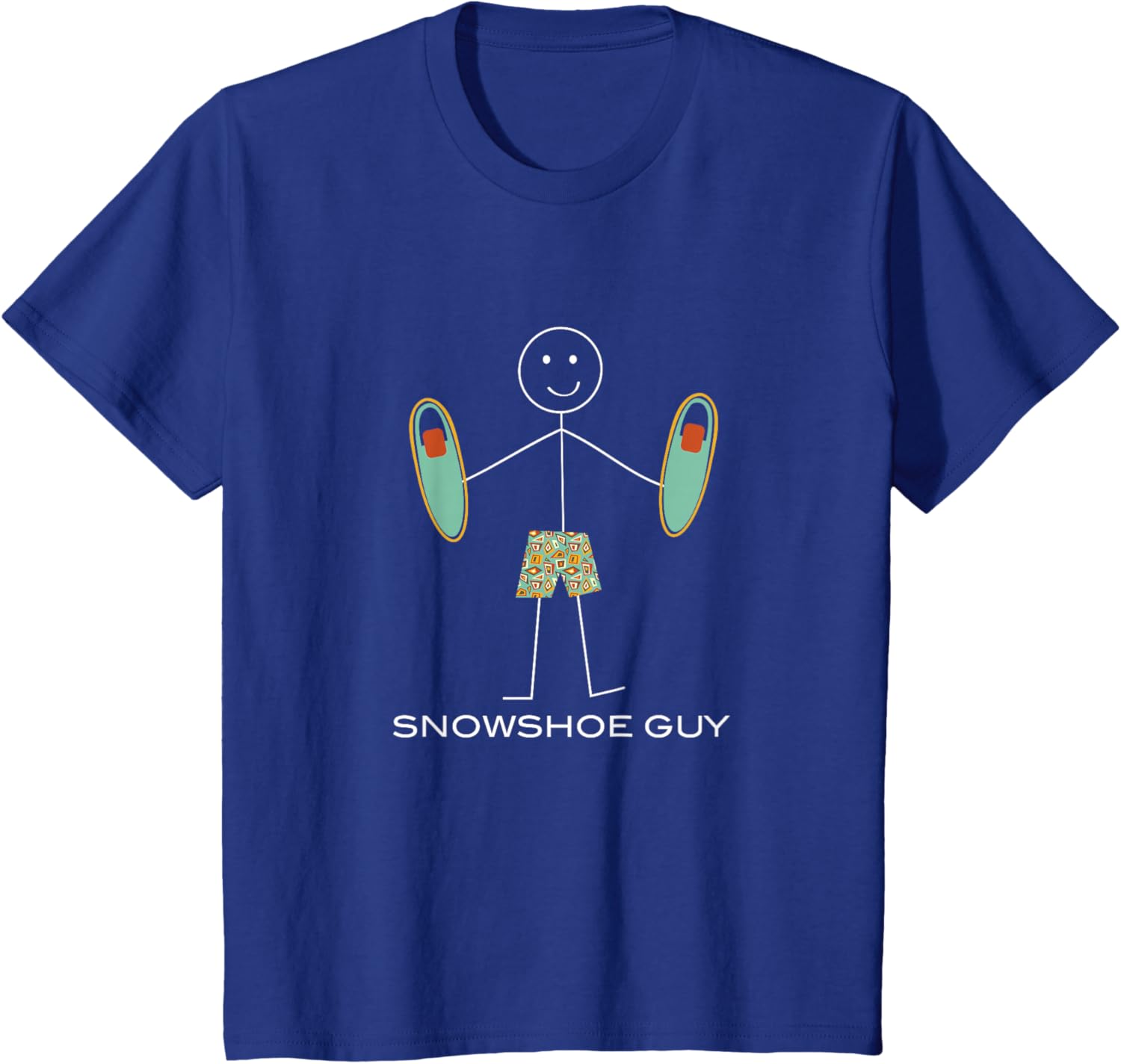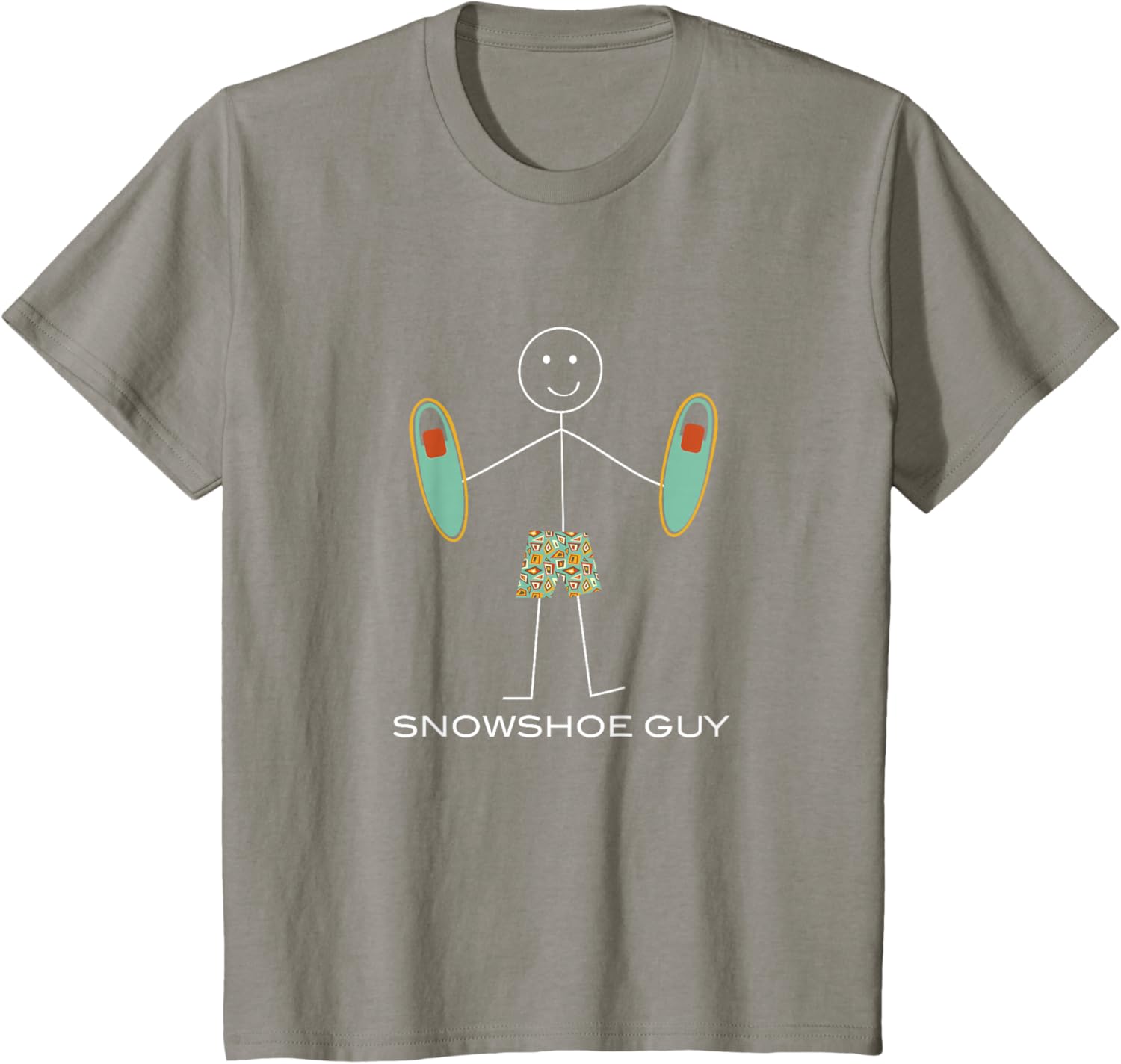 Snowshoe Guy with stick figure boy holding snowshoes. Perfect for those who love to snowshoe