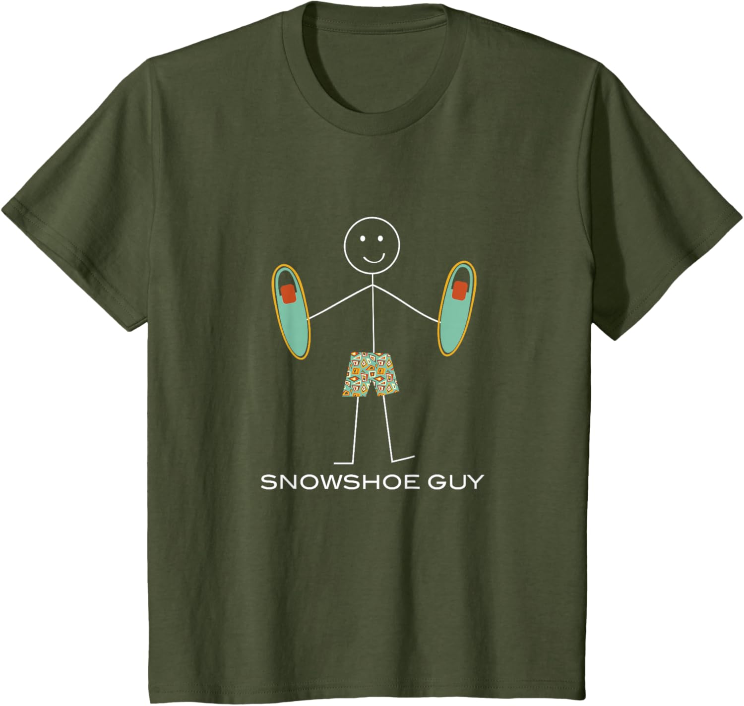 Snowshoe Guy with stick figure boy holding snowshoes. Perfect for those who love to snowshoe