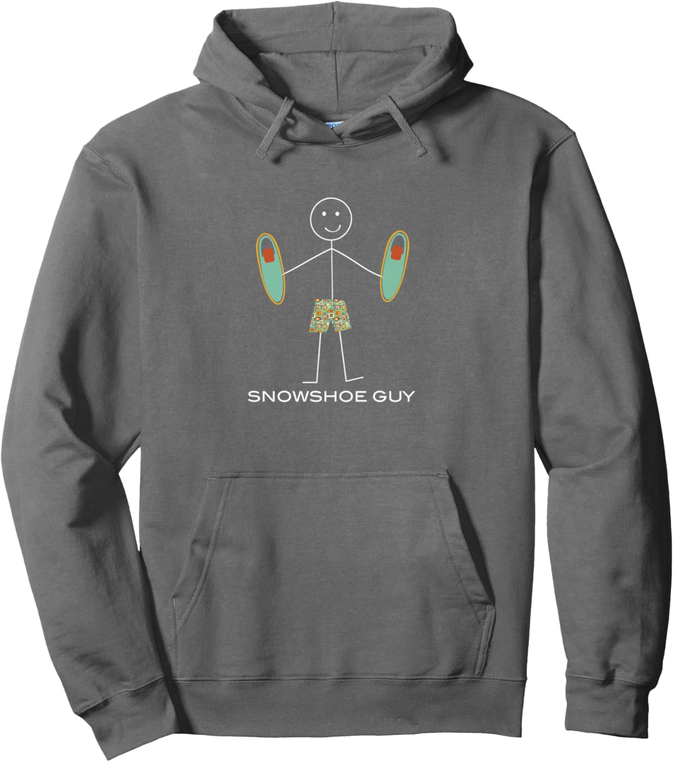 Snowshoe Guy with stick figure boy holding snowshoes. Perfect for those who love to snowshoe