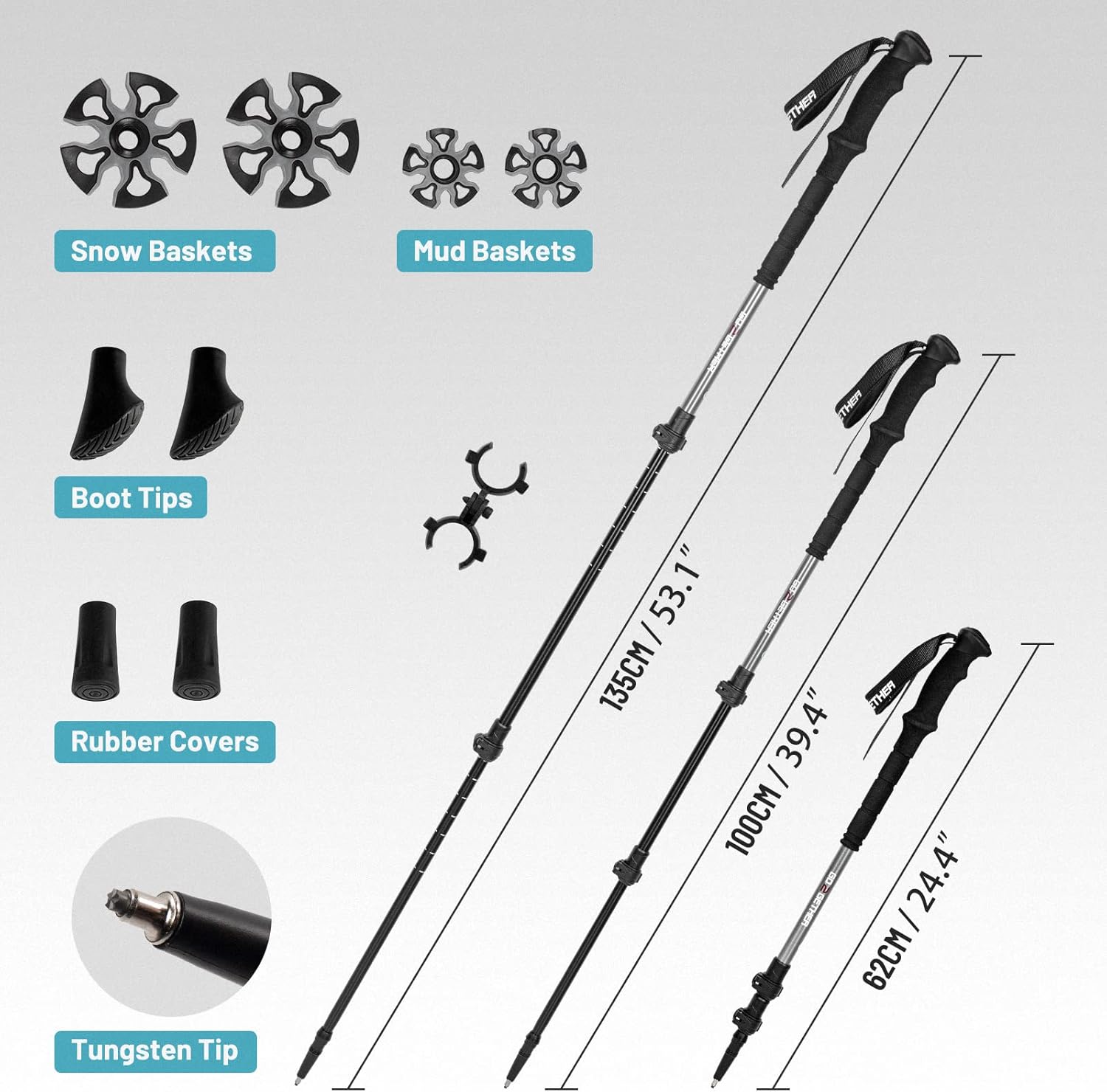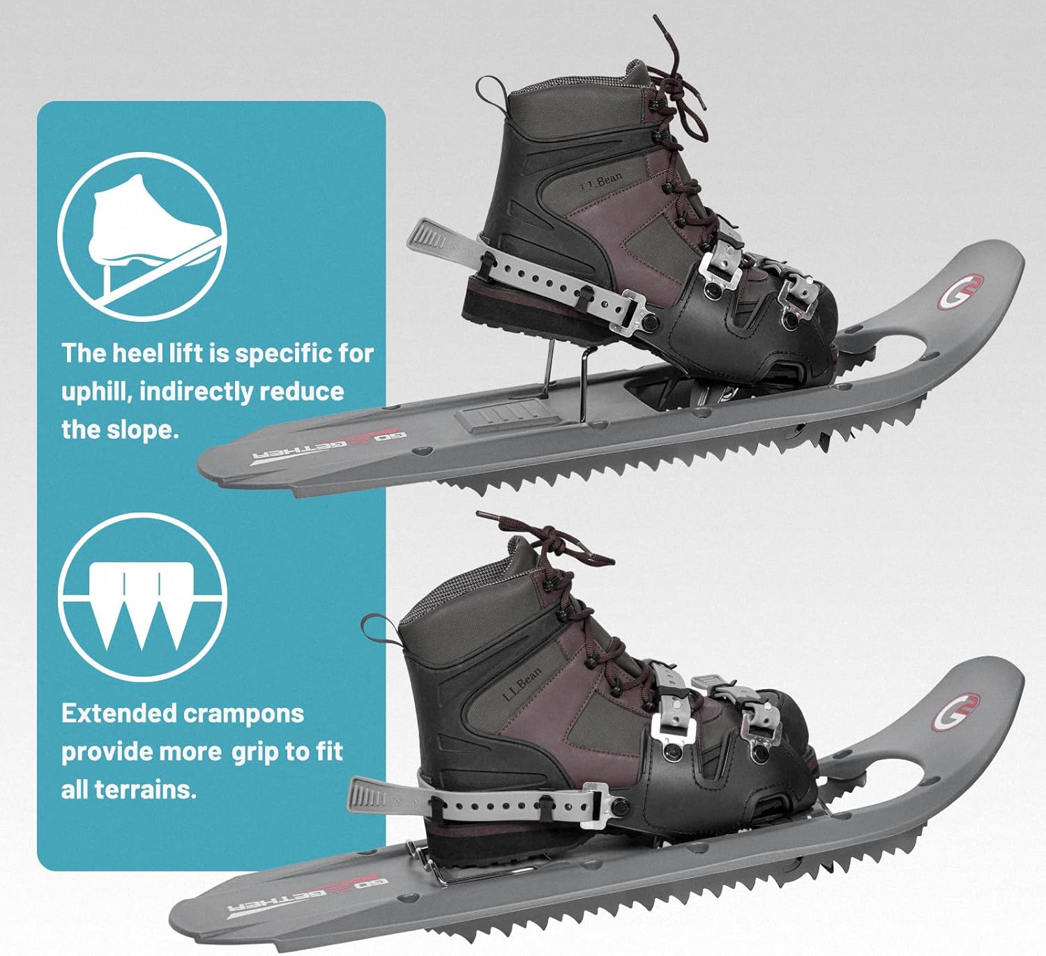 G2 23/25/30 Inch Mountain Terrain Snowshoes with Trekking Poles Set, Special Steel Traction Rails, EVA Foam Padded, Flexible Pivot Bar, Tote Bag, Grey/Blue/Red Available