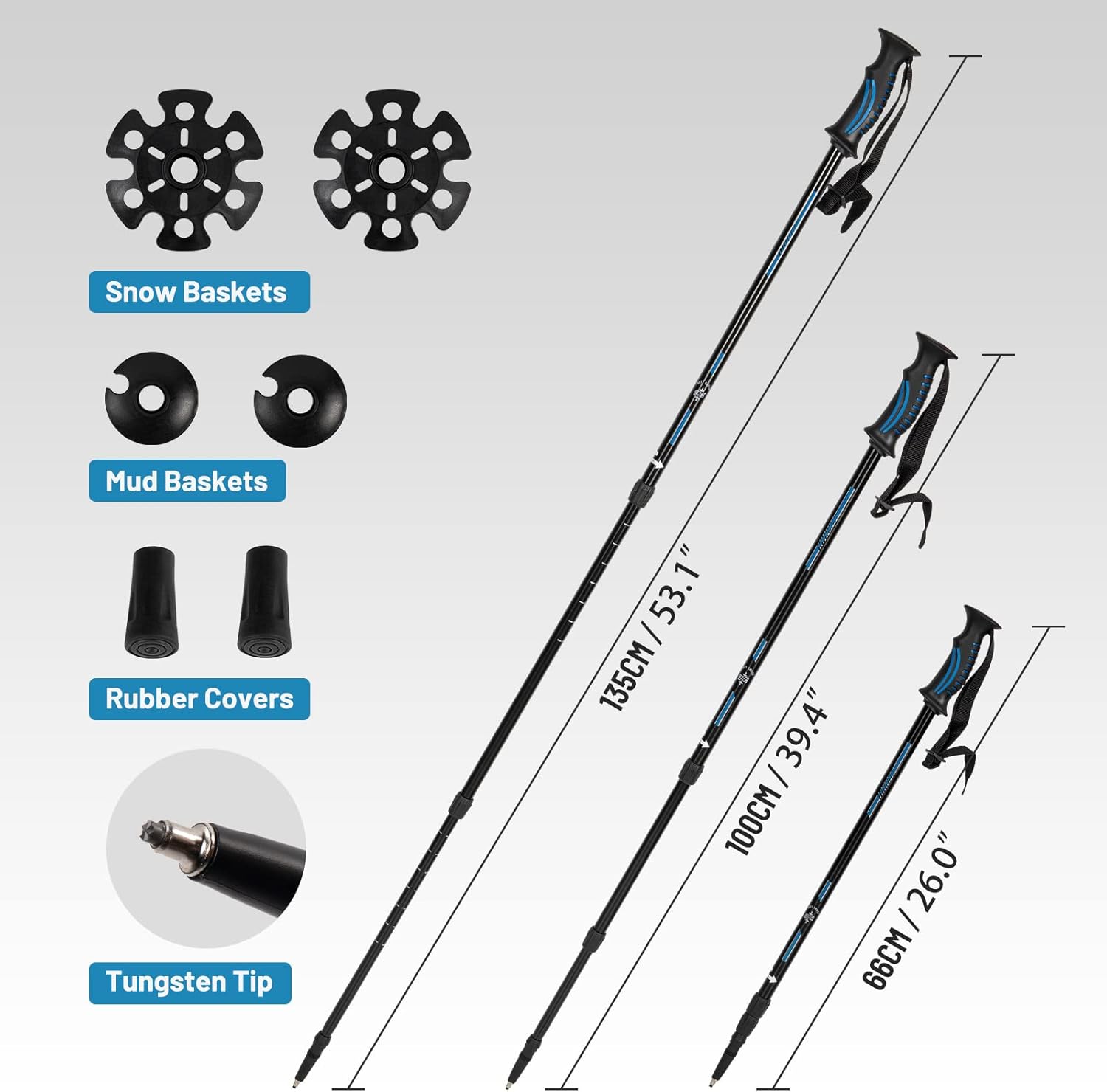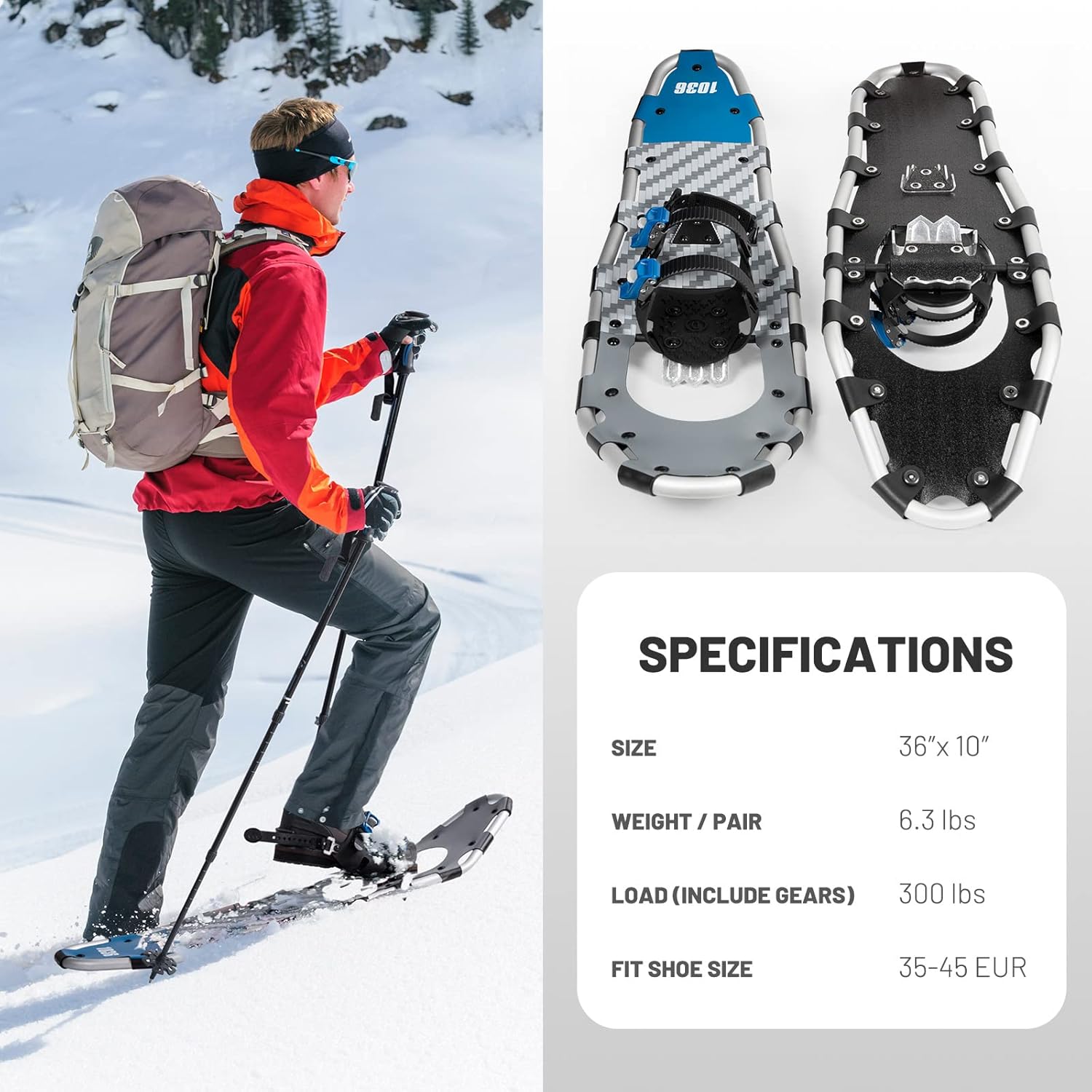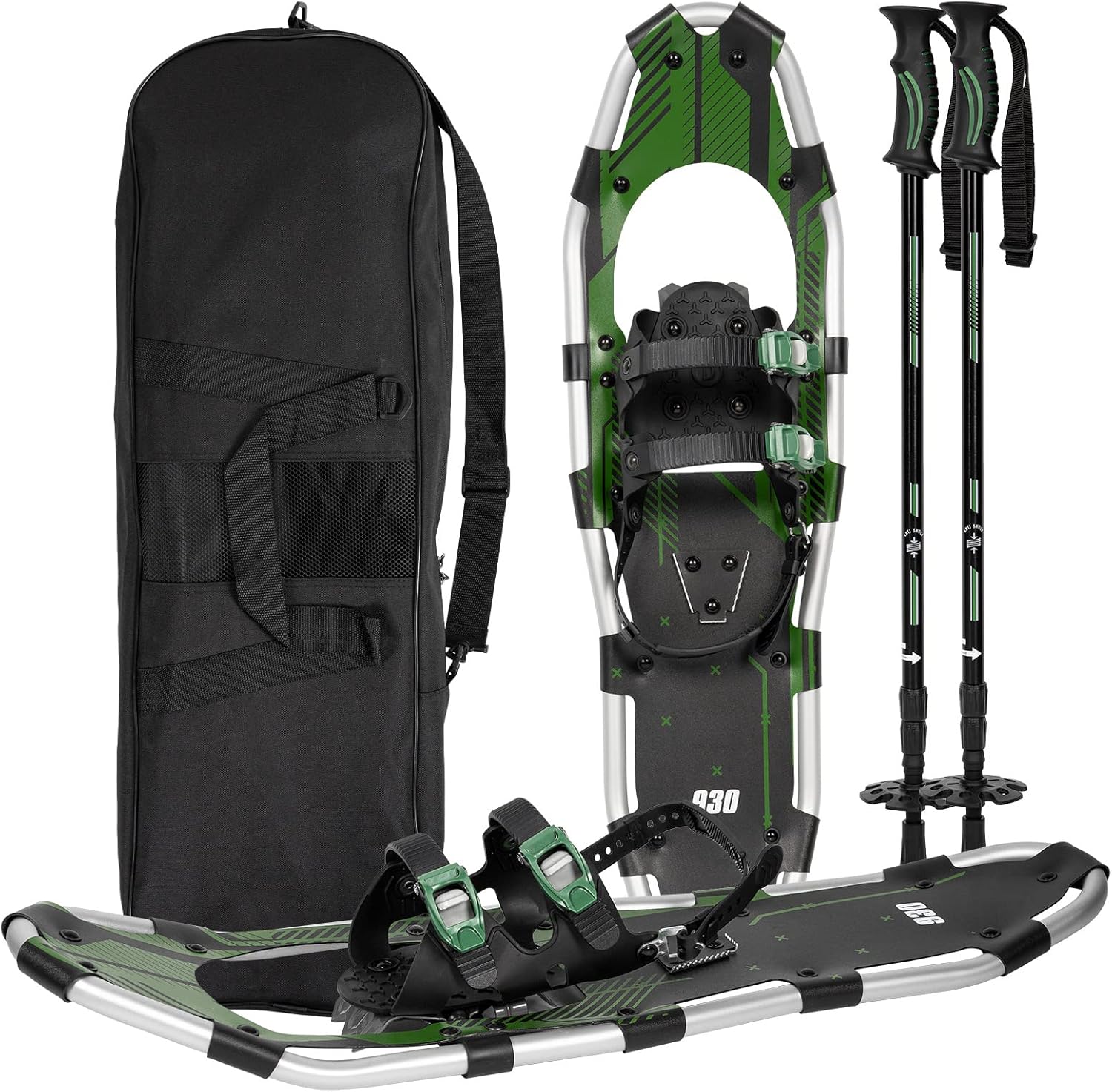 G2 30/36 Inches Light Weight Snowshoes Set with Trekking Poles, Anti-Slip Sole, Fast Ratchet Binding, for Women Men Youth (Blue/Green)