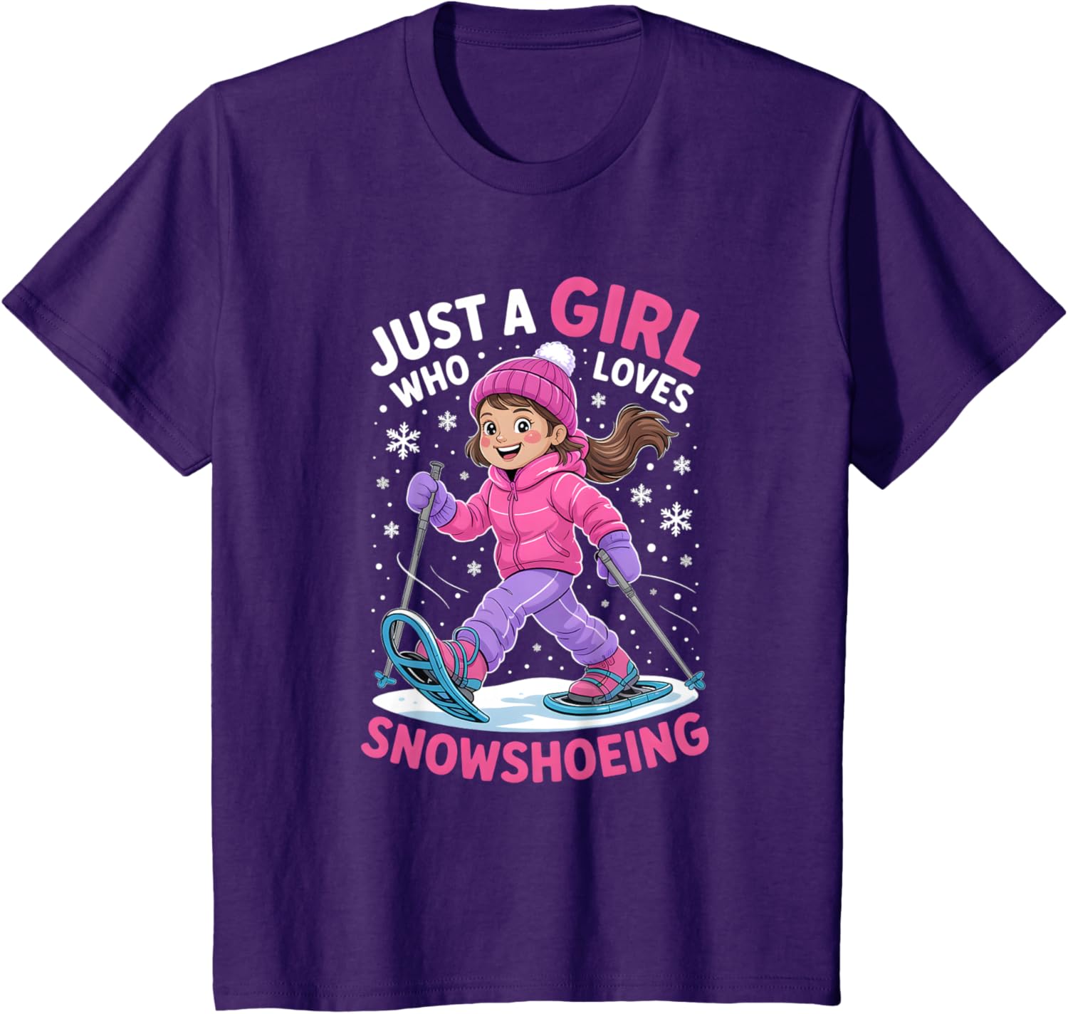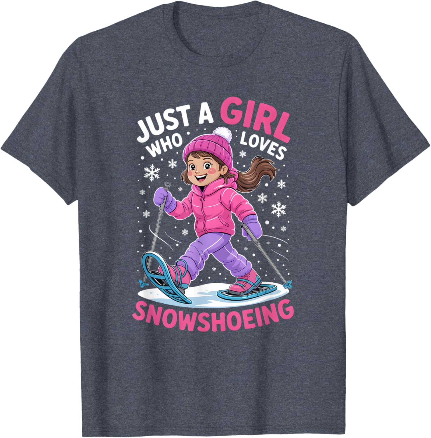 Just a Girl who loves Snowshoeing T-Shirt for toddlers, girls and kids. Showcase your girls appreciation for Snowshoeing with this funny Snowshoeing Tee. This Funny Snowshoeing T-Shirt will make a great addition to any girls wardrobe.