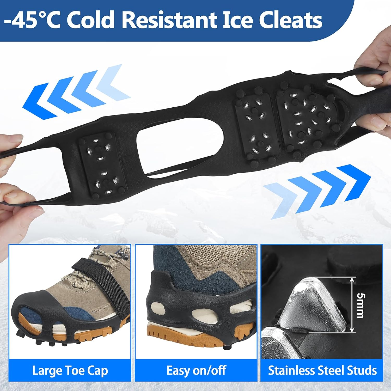 [ More Safe & Durability ] – Traction cleats made of thermoplastic elastomer rubber, lightweight and lasting. Which keep high elasticity even under -45℉, won't tear or snap. Aggressive cleats and treads prevent slips and falls on ice, snow, and wet pavement.