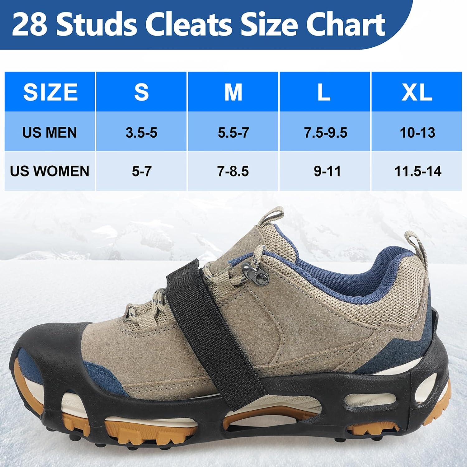 JSHANMEI Crampons Ice Cleats for Shoes and Boots Upgraded 28 Steel Studs Anti Slip Ice Shoes Grippers Snow Traction Cleats for Walking on Snow and Ice