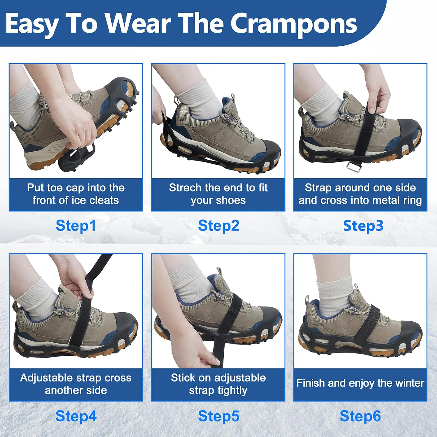 Ice Cleats Walk Traction Cleats Crampons for Hiking Boots Snow Shoes, Non Sli…