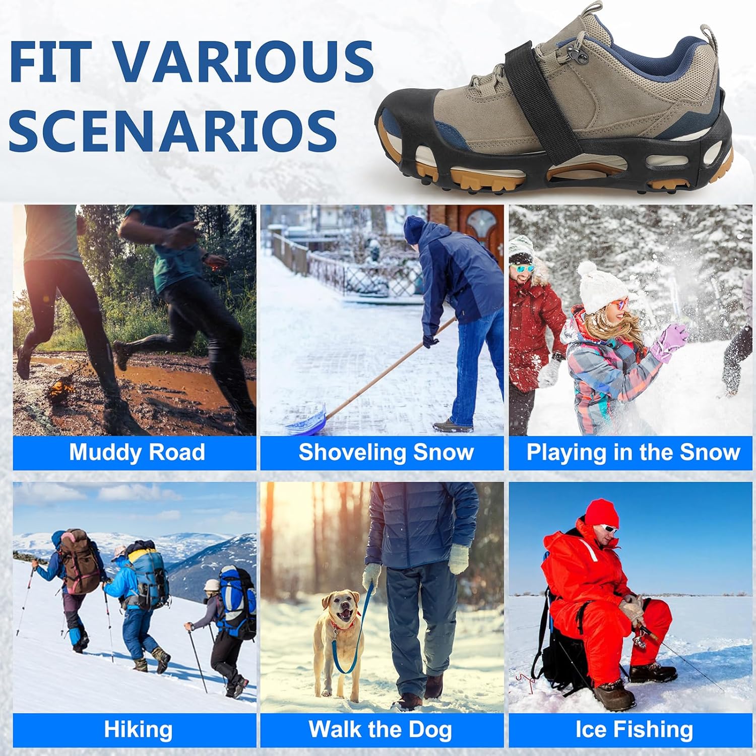 [ Widely Used ] – Suitable for both male and female of any age of teenagers, adult, elders. For outdoor ice and snow, hiking angled terrain, icy roads, ice driveway, dangerous sections of trail (ice covered boulders,woods ice mud,etc.) Great for winter trail running, hiking, and ice fishing.