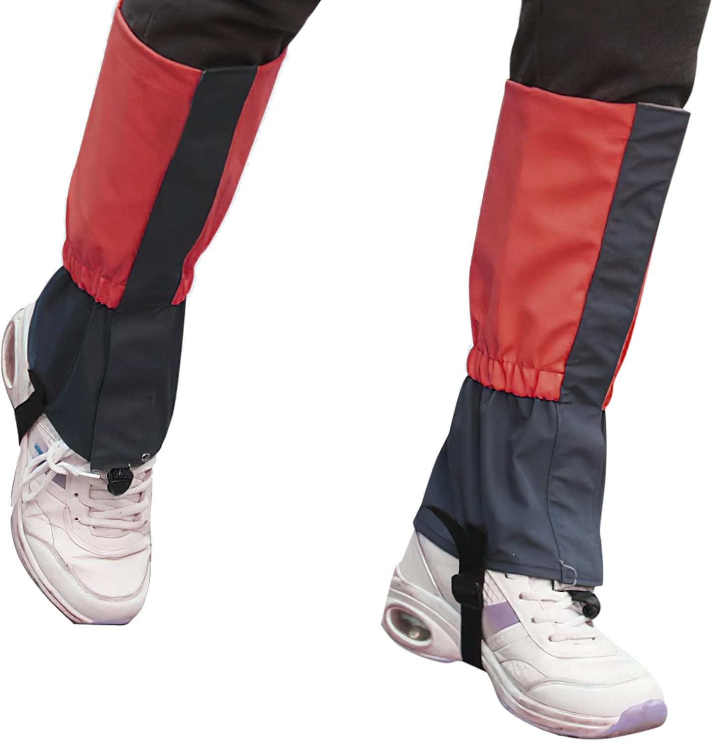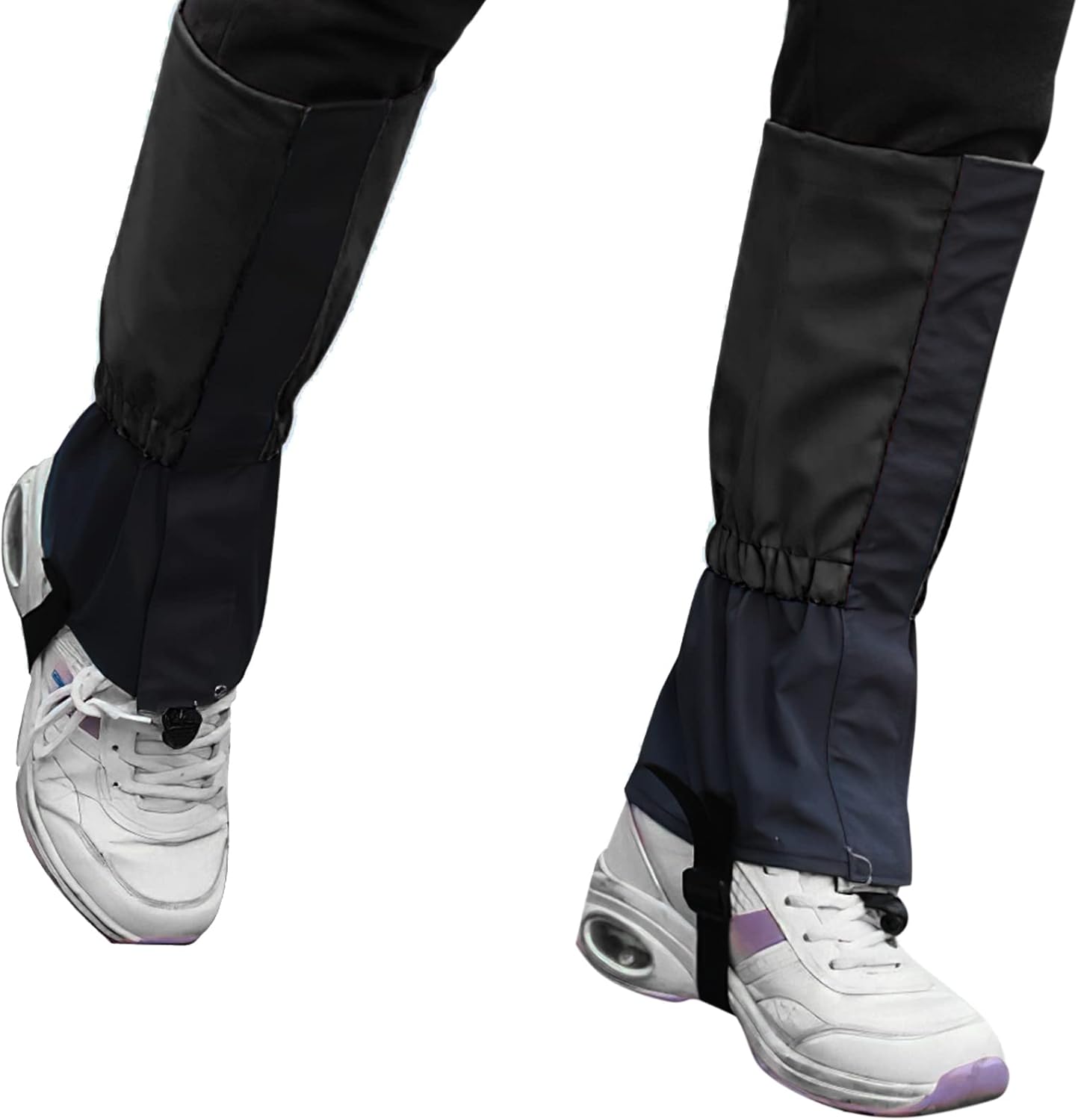 - Top adjustable drawstring helps snow gaiters hug your legs more firmly to avoide slipping off effectively. The the bottom strap is durable that designed to fit your shoes more freely