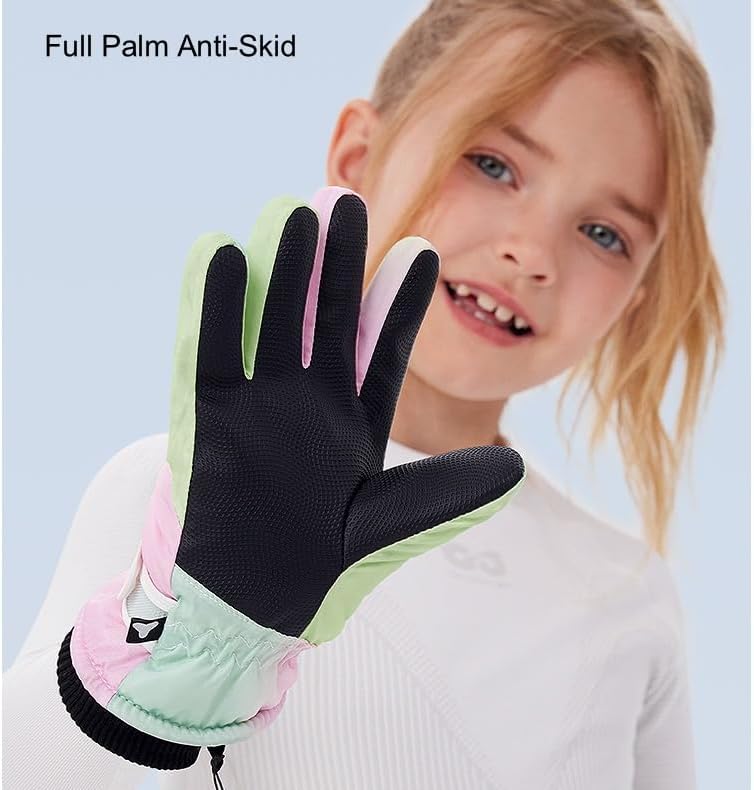 JJZS Boys Girls Ski Snow Gloves Waterproof Winter Insulated Thermal Kids Snowboard Gloves for Skiing Snowboarding Ice Skating Snow Sleds Extreme Cold Weather Ski Gear