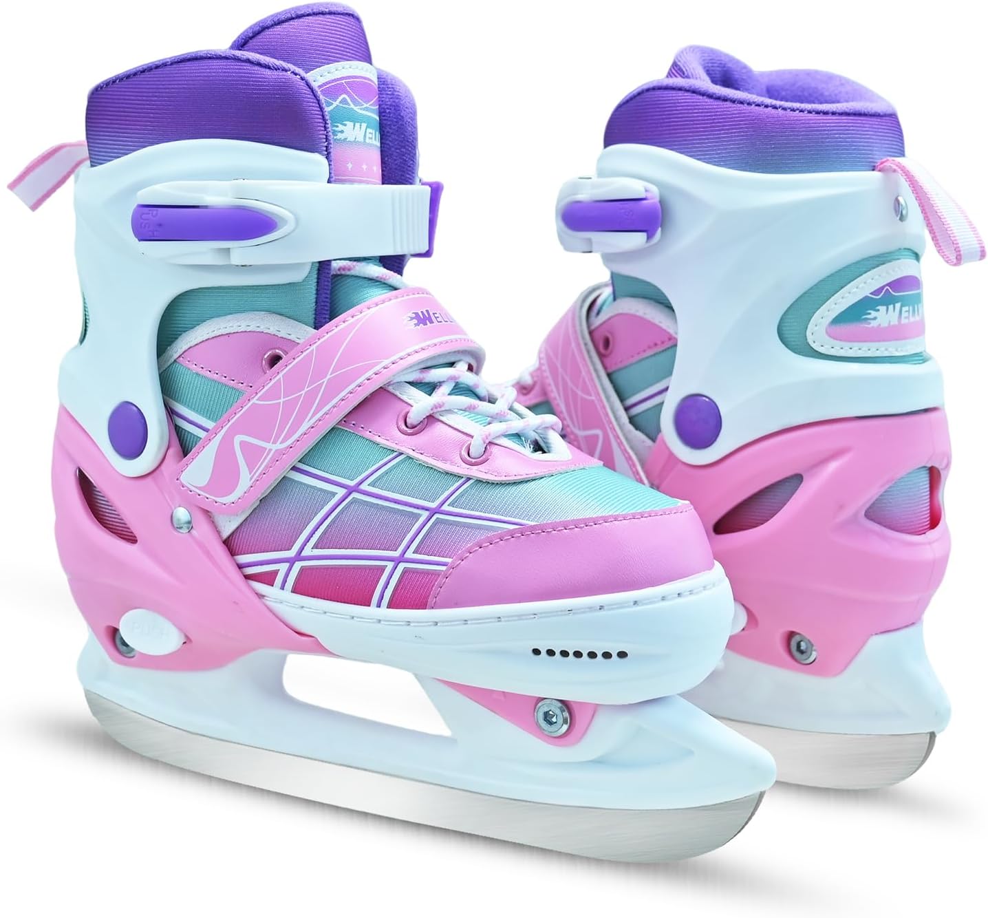 Kids Ice Skates for Boys and Girls, Adjustable Ice Skating Shoes for Beginner Ages 4-12, Gradient Pink Purple Green Iceskates for Outdoor and Rank