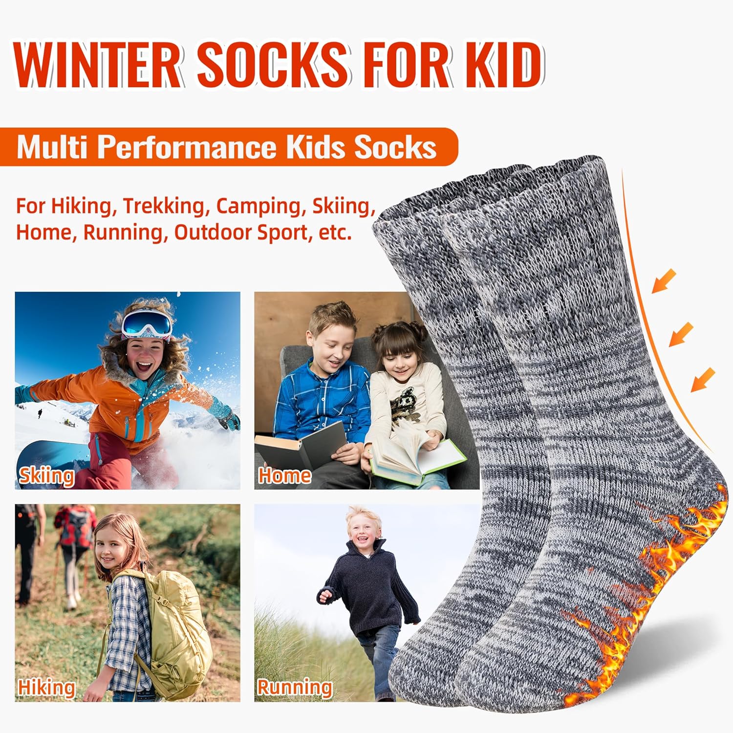Kids Warm Thermal Socks for Toddler Boy Girls Winter Ski Thick Insulated Heated Boot Socks for Extreme Cold Weather 4 Pairs