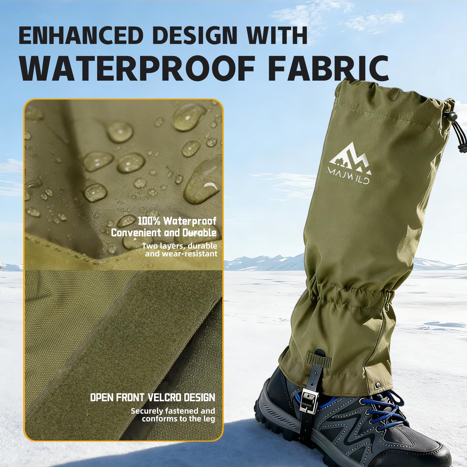 MAJWILD Adjustable Leg Gaiters, Waterproof Snow Boot Gaiters for Men Women with Hiking, Walking, Hunting, Snowshoeing, Climbing