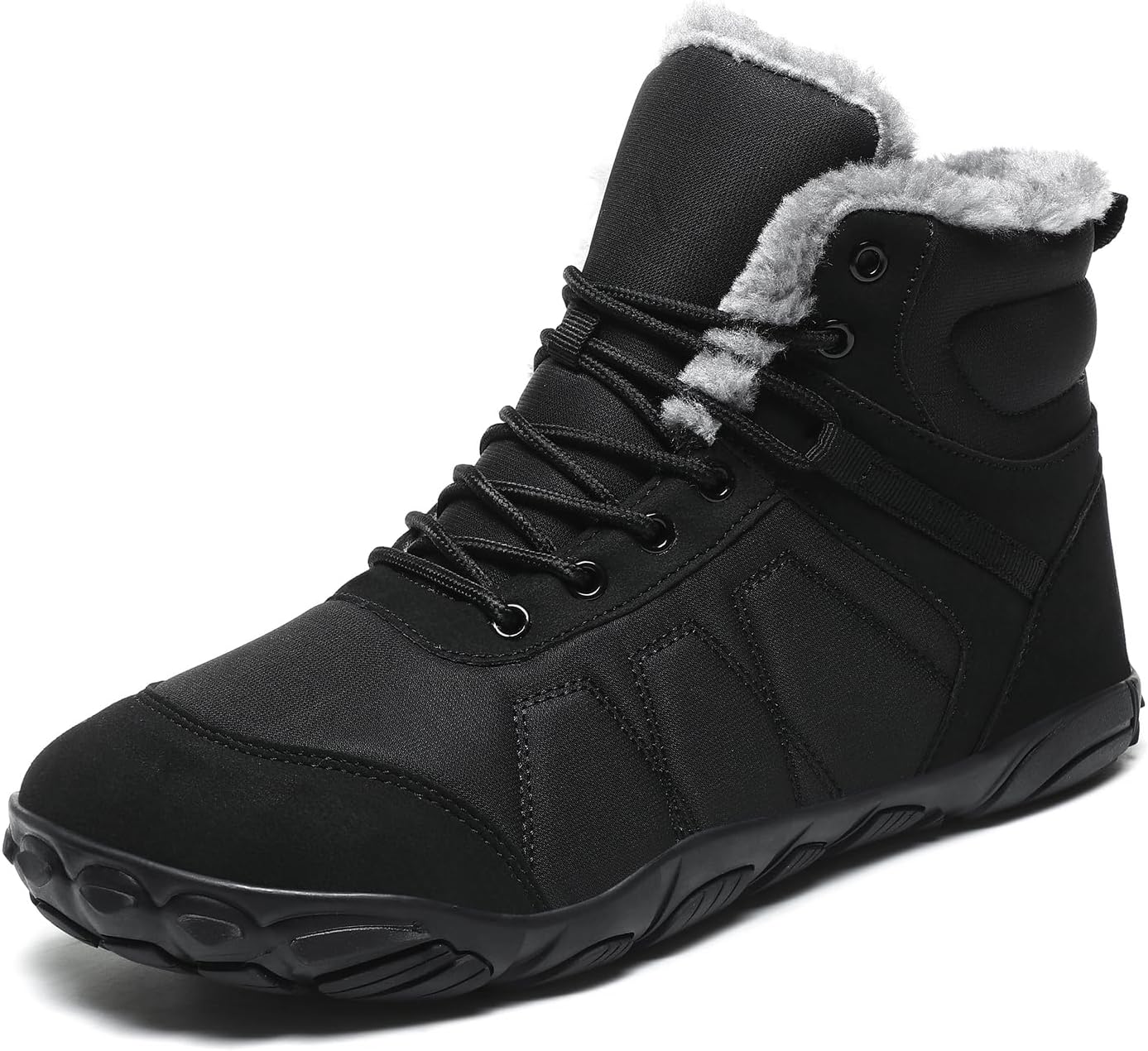 Mens Womens Snow Boots Winter Barefoot Shoes Warm Fur Lined Short Ankle Booties Outdoor Anti-Slip Wide Toe Box Walking Winter Shoes