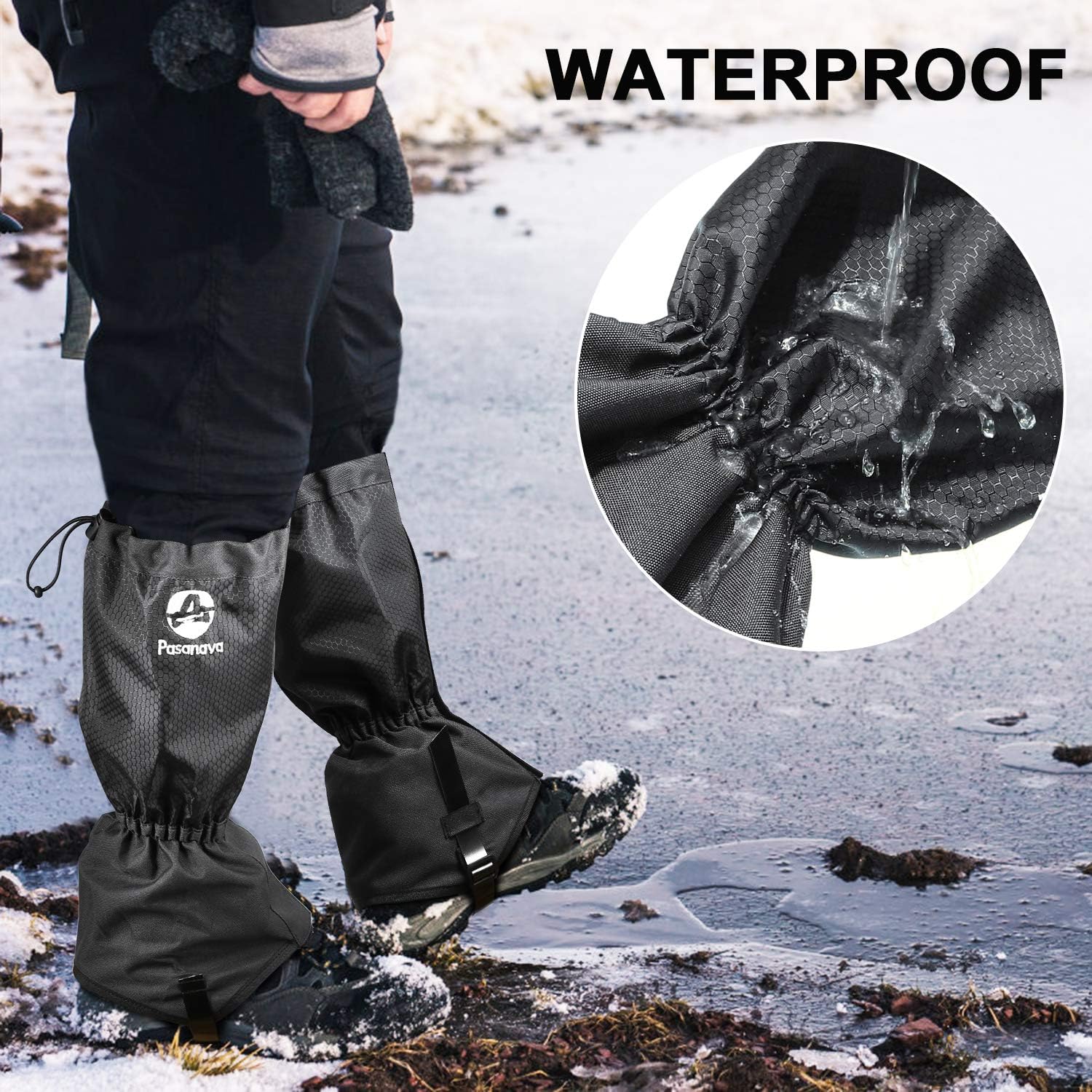 Pasanava Leg Gaiters Waterproof and Adjustable Snow Boot Gaiters One Size for Hiking,Walking,Hunting,Backpacking and Outdoor Climbing for Men and Women in Winter