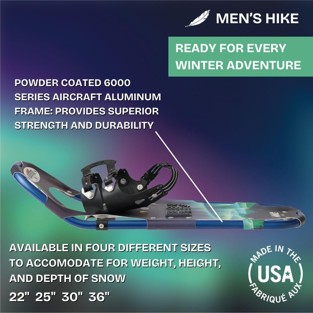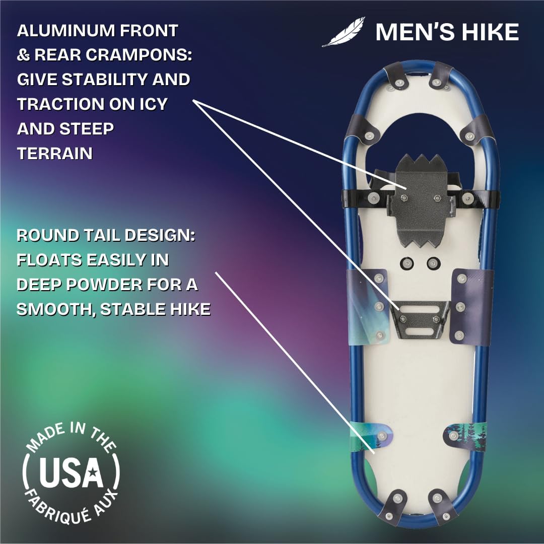 Redfeather Outdoors Hike Men’s Snowshoes Kit – Lightweight, Durable, Made in The USA – Ideal for Winter Hiking, Snowshoeing, and Outdoor Adventures – Premium Performance Snowshoes