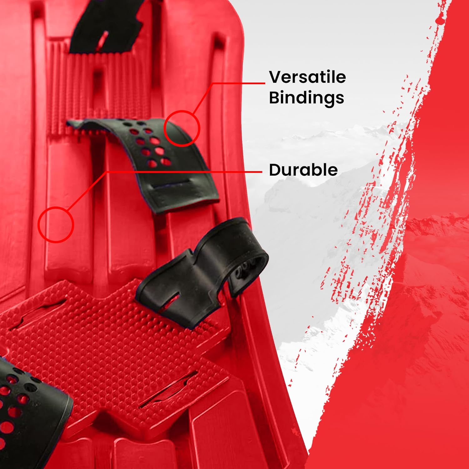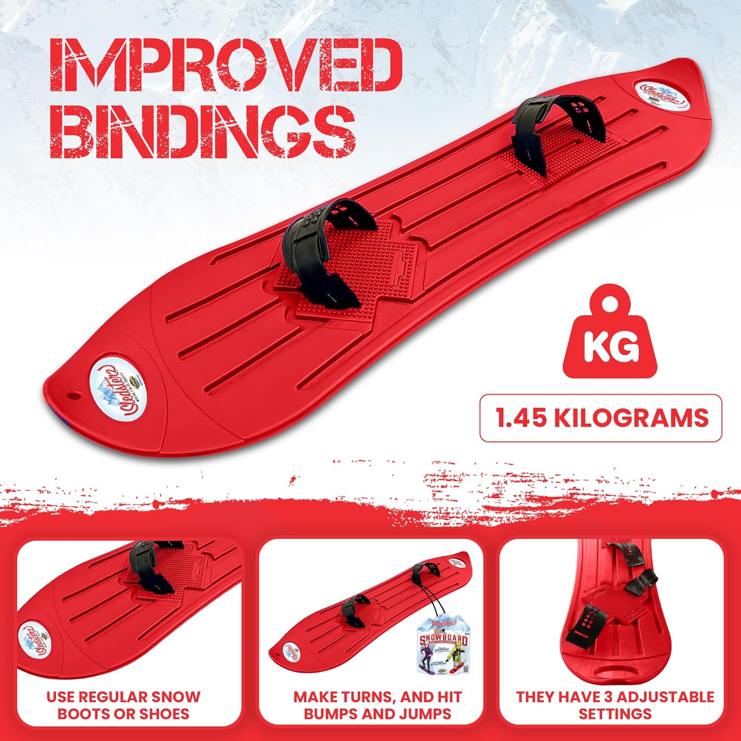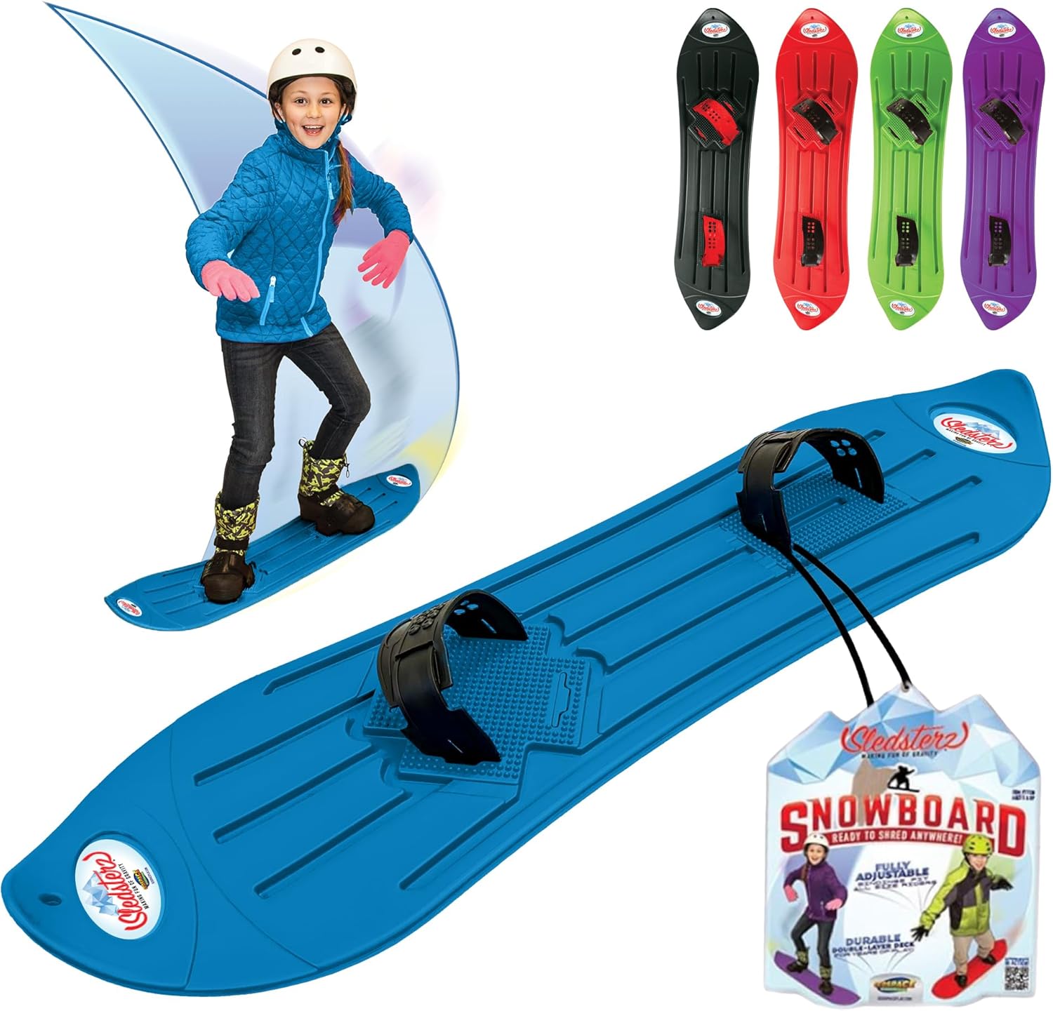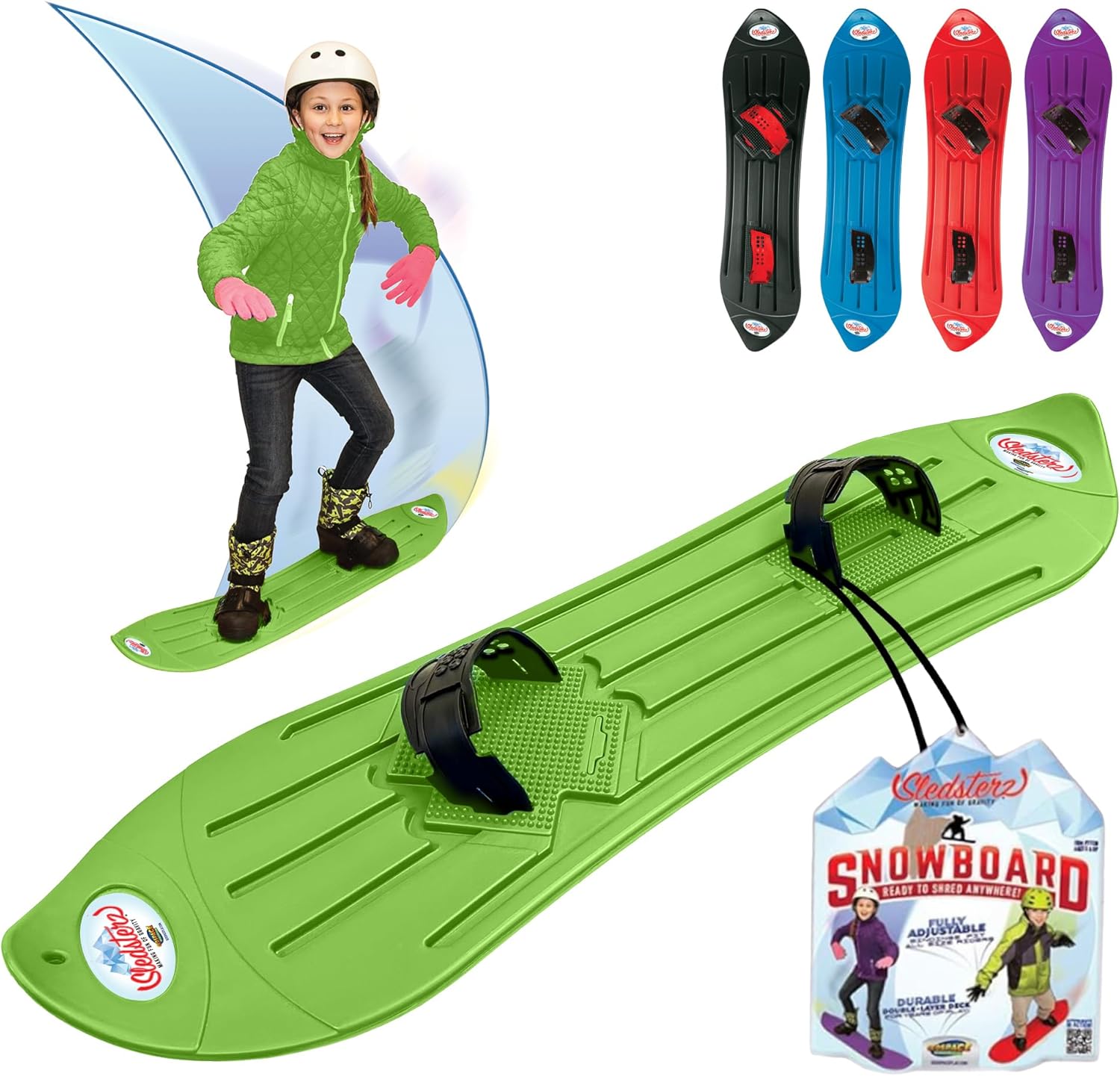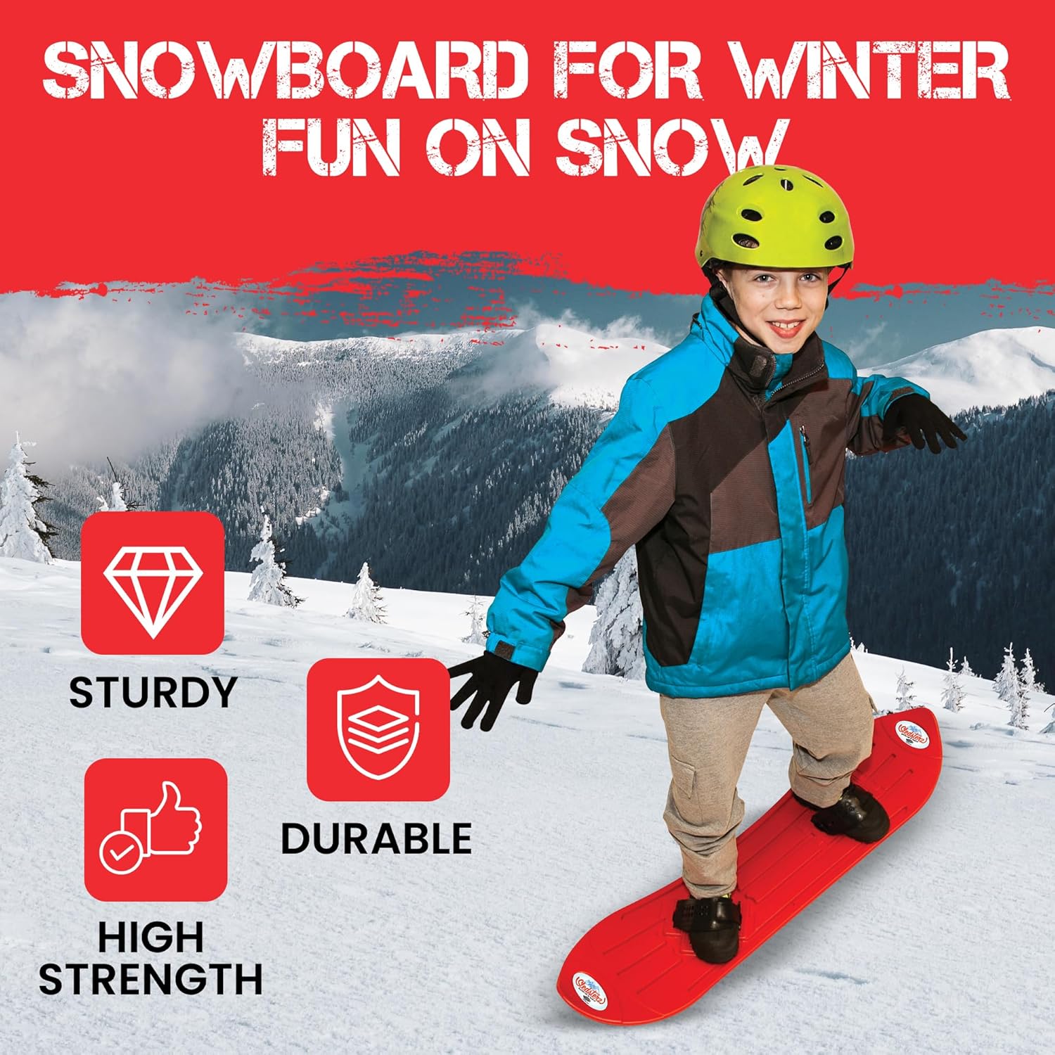 - BEST WINTER FUN – Our Red SLEDSTERZ kids Snowboard is shaped to go fast, make turns, and hit bumps and jumps on snow covered hills in the neighborhood.